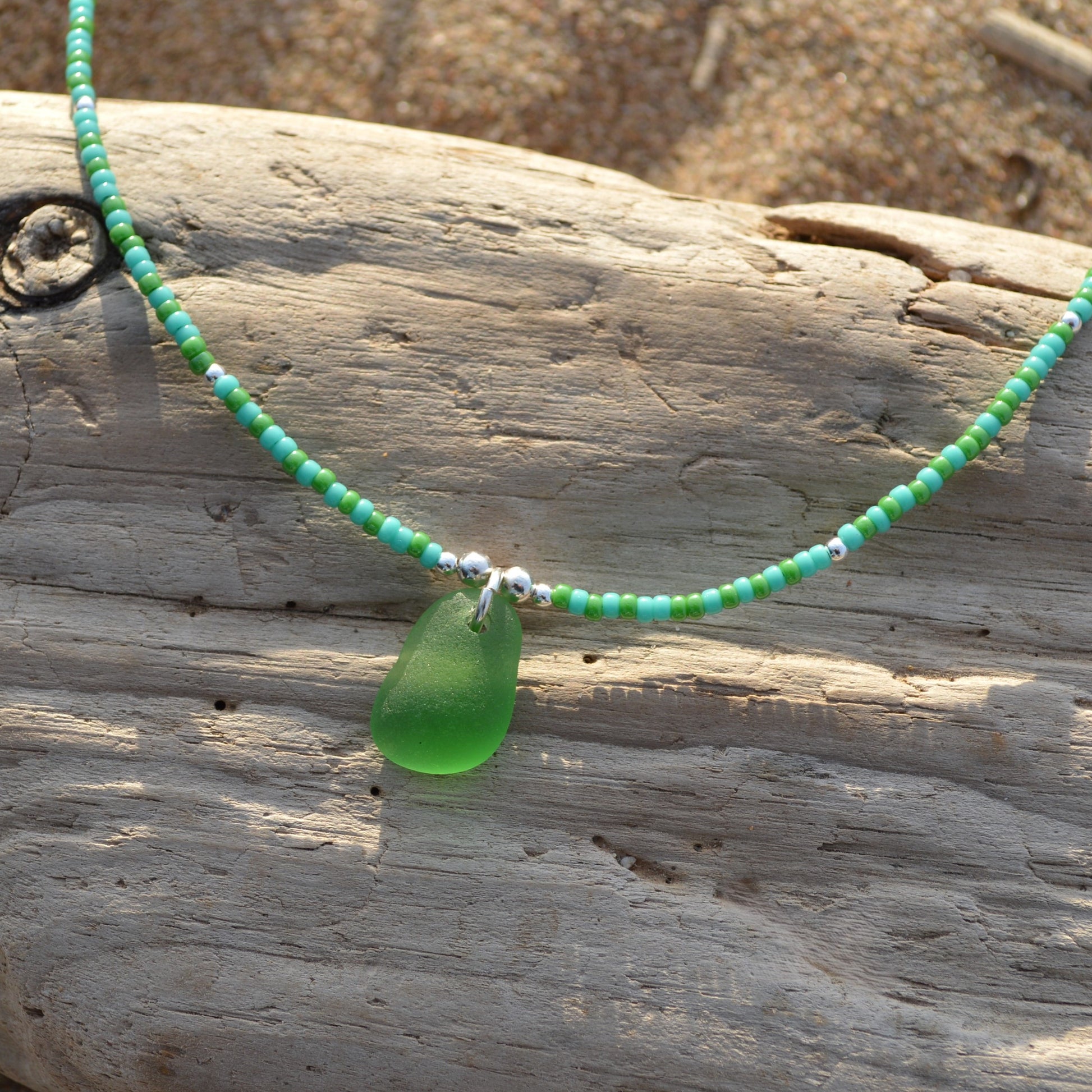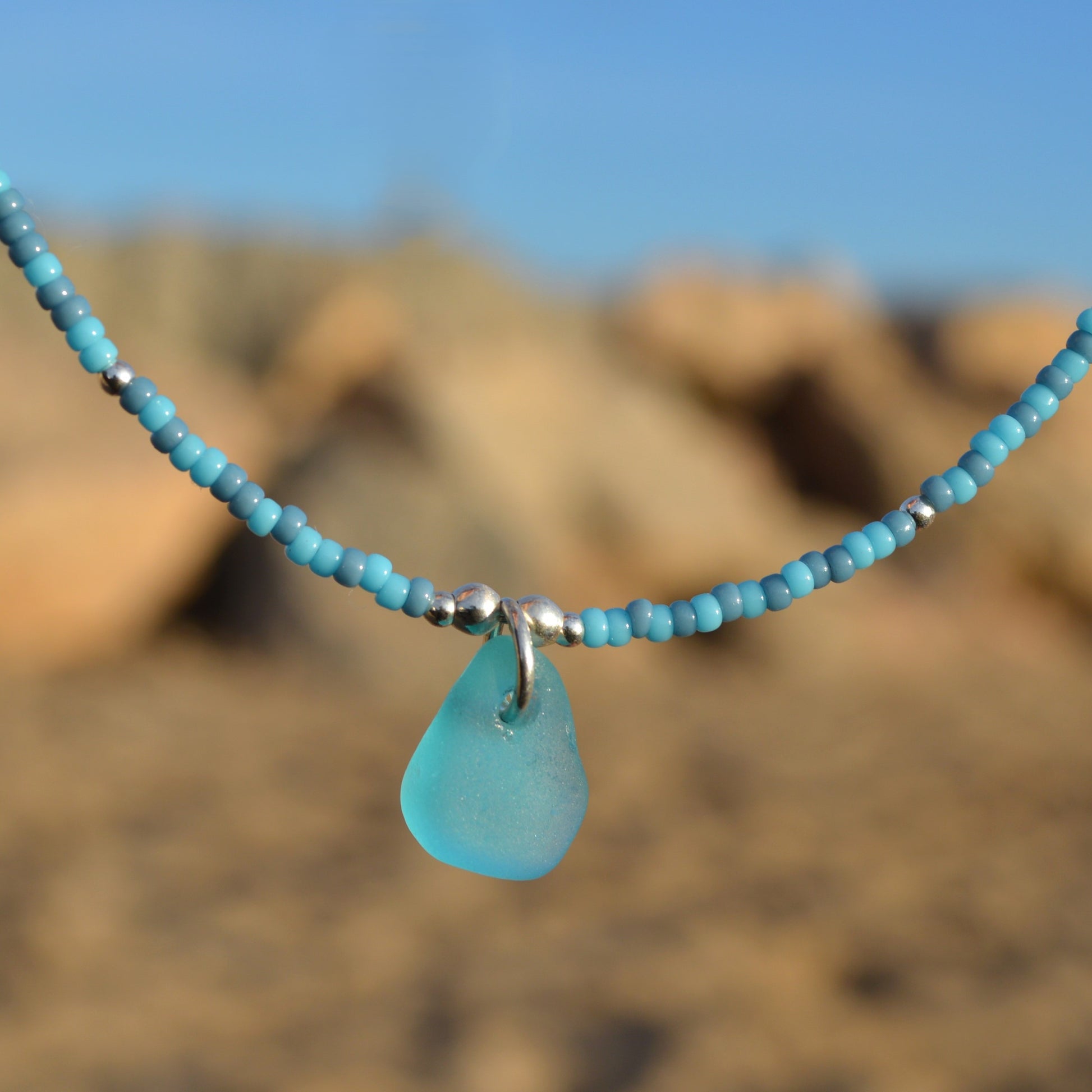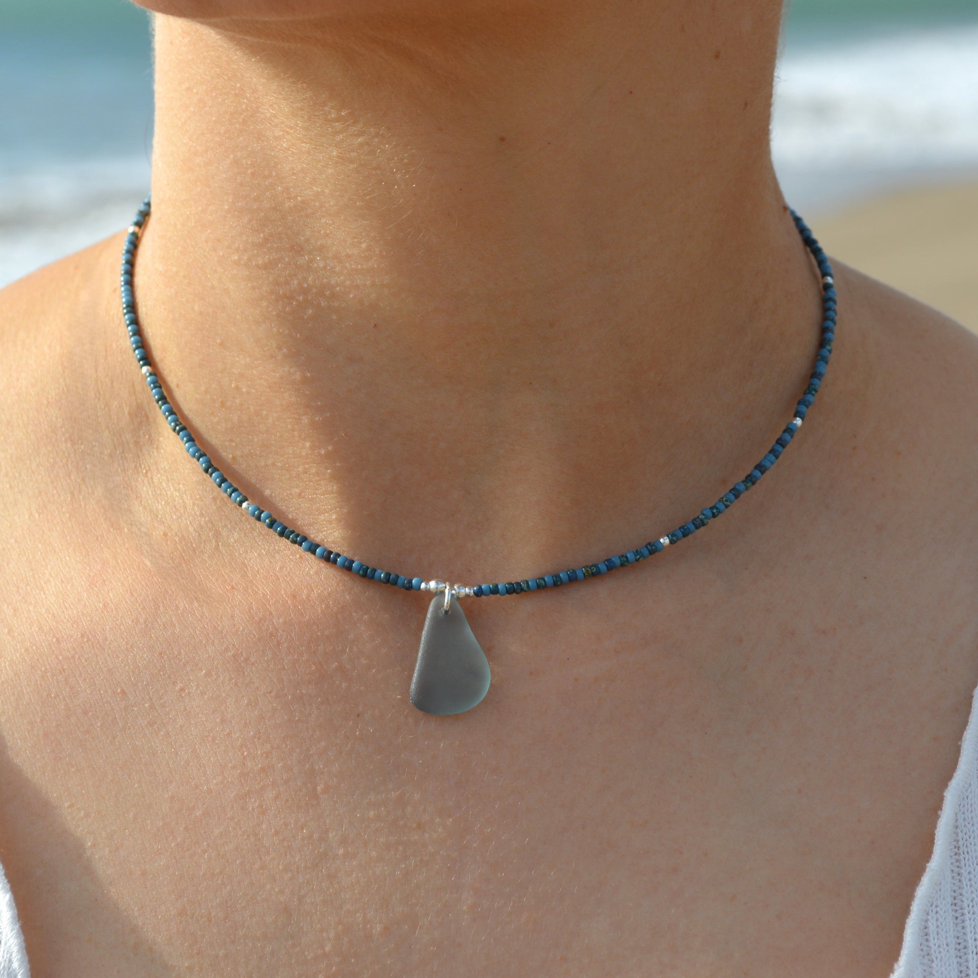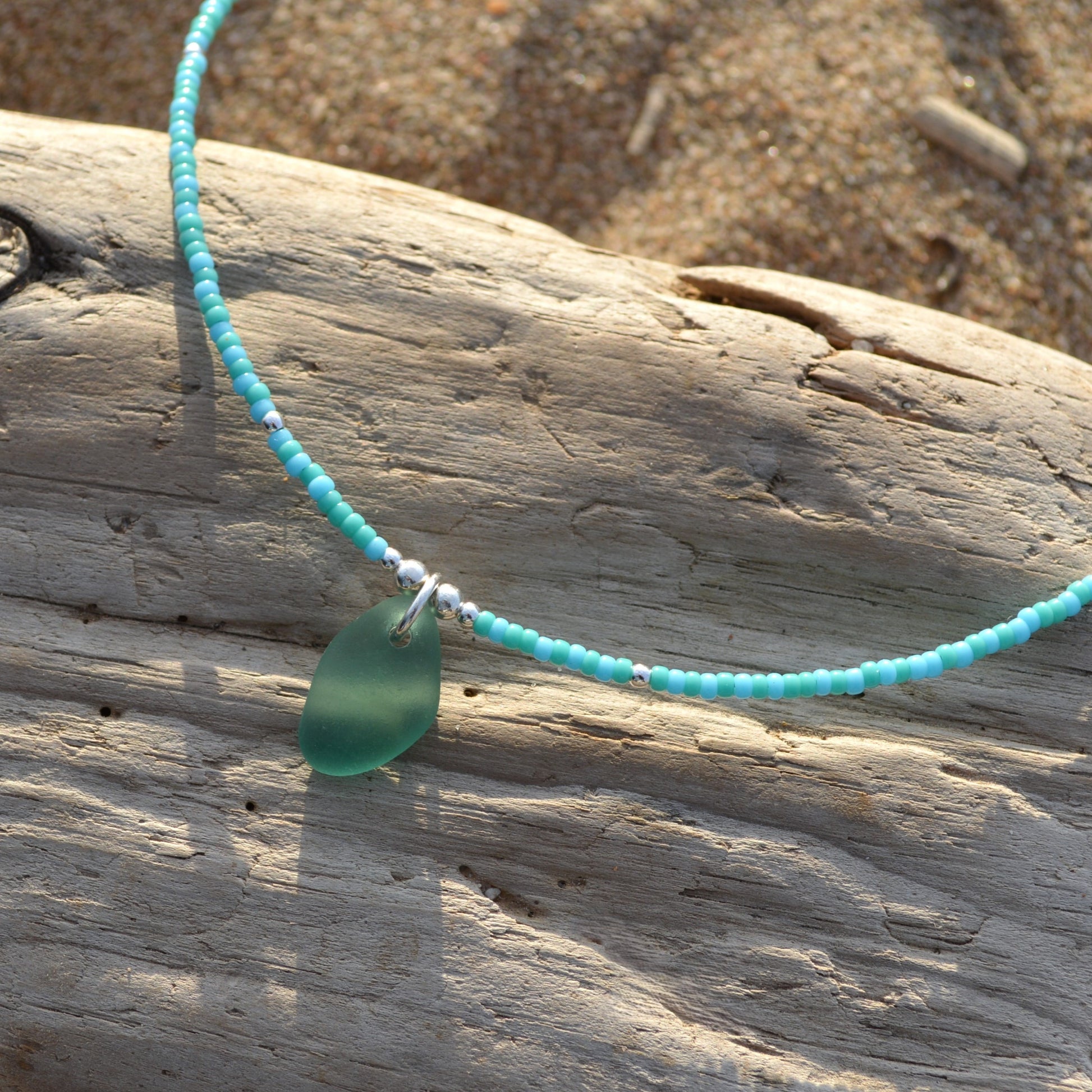 COLORES DE CRISTAL DE MAR: azul, verde, turquesa, gris - el tamaño, la forma y el tono variarán ligeramente, haciendo que cada collar sea verdaderamente único.