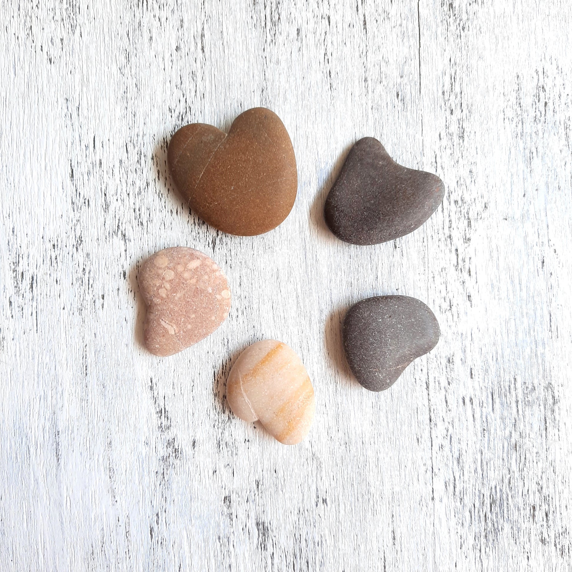Assorted selection of beautiful naturally heart shaped pebbles for your jewelry, craft projects, pebble art or card making.