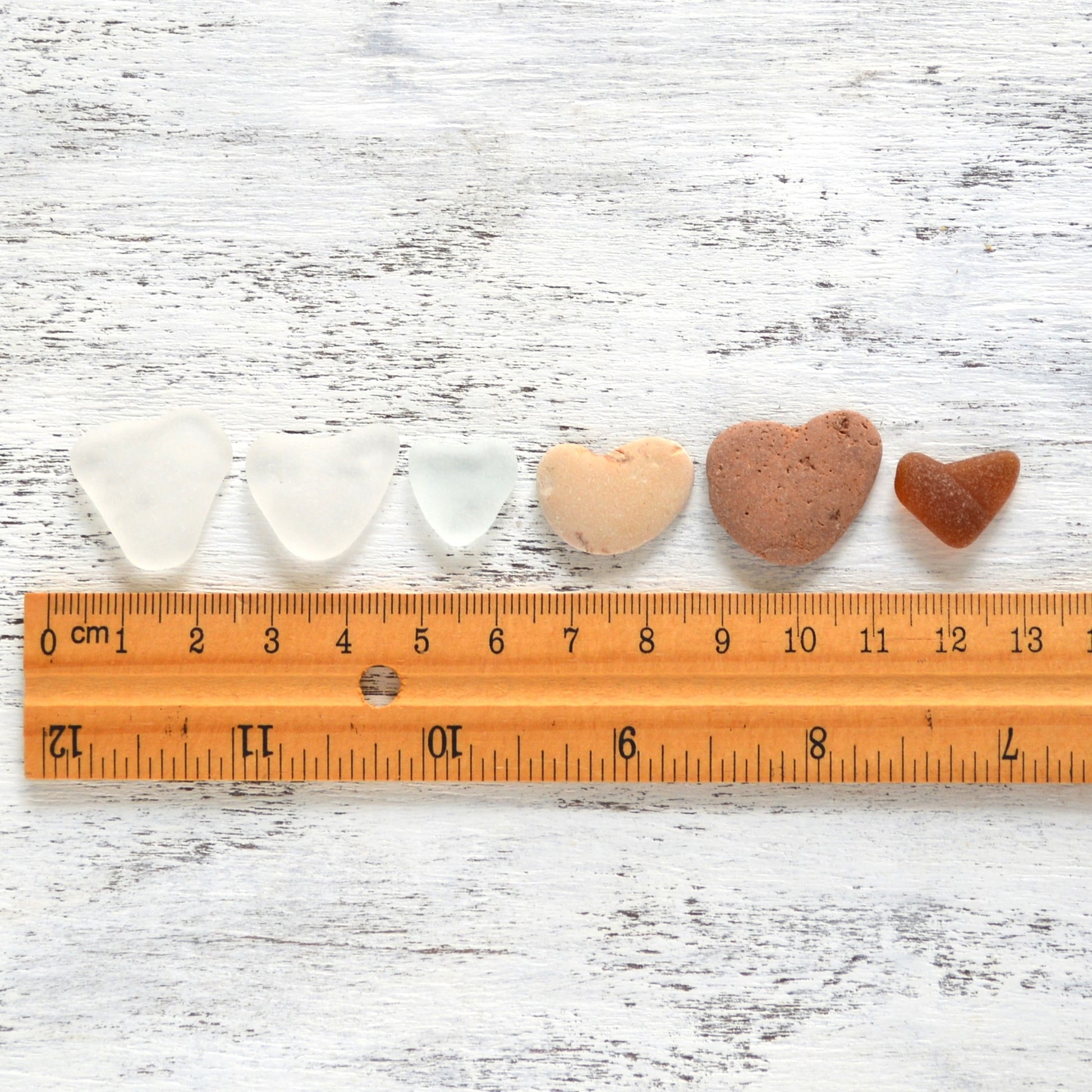 Heart Shaped Sea Glass & Pebbles - 6 pieces