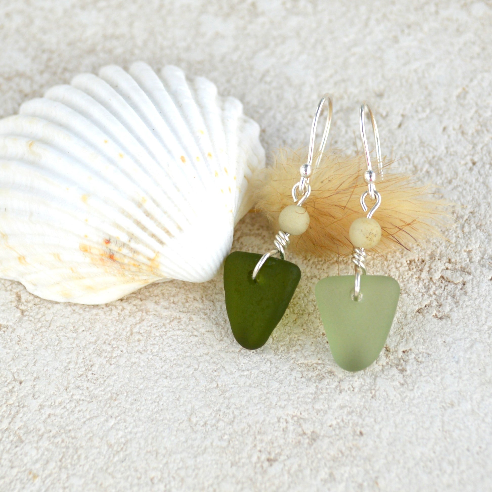 These vibrant earrings showcase genuine sea glass in contrasting hues, naturally shaped by the sea into bold triangles. Each pair is hand-selected and carefully matched for harmony in color and form, then handcrafted with recycled sterling silver wire for an eco-friendly, artisan finish.